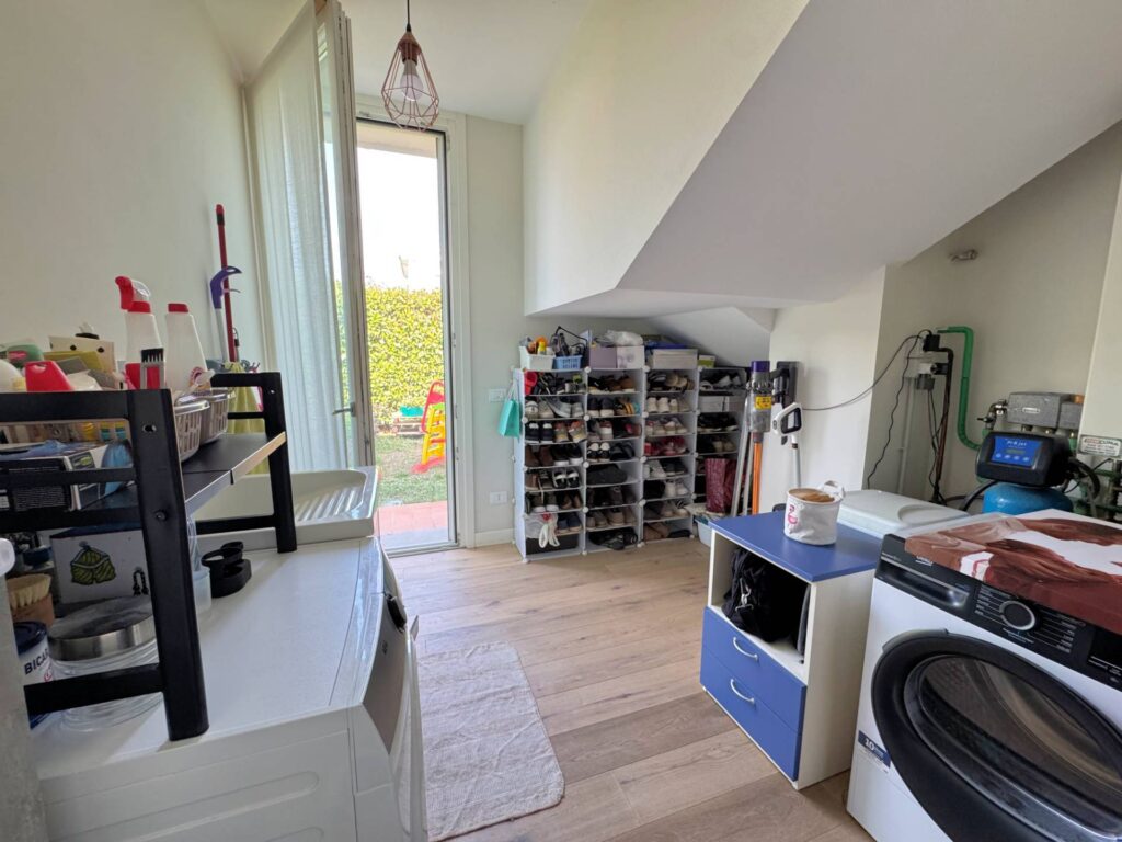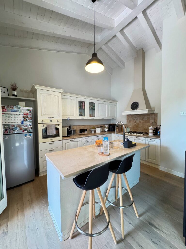 Piano Terra: entrando in questa favolosa bifamiliare troviamo un soggiorno di ampie metrature e con grande luminosità, con termo camino ad aria per comfort immediato; cucina su misura con isola centrale e porta finestra che si aprono sul loggiato, ideale da utilizzare come zona pranzo all’aperto o salotto estivo; 2 camere da letto al piano e splendido bagno rifinito con vasca idromassaggio e doccia oltre a ripostiglio/lavanderia , da comode scale arriviamo al