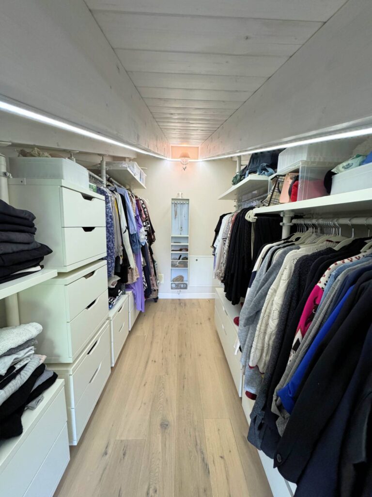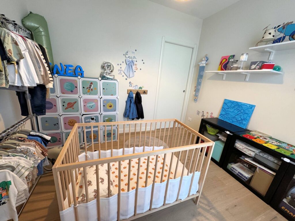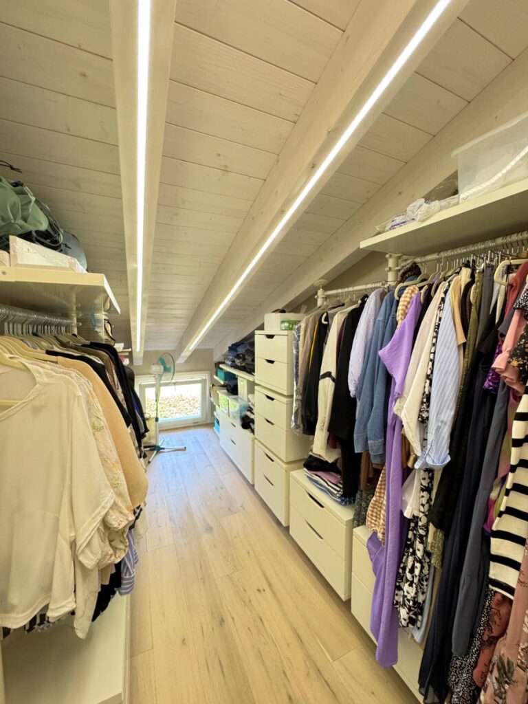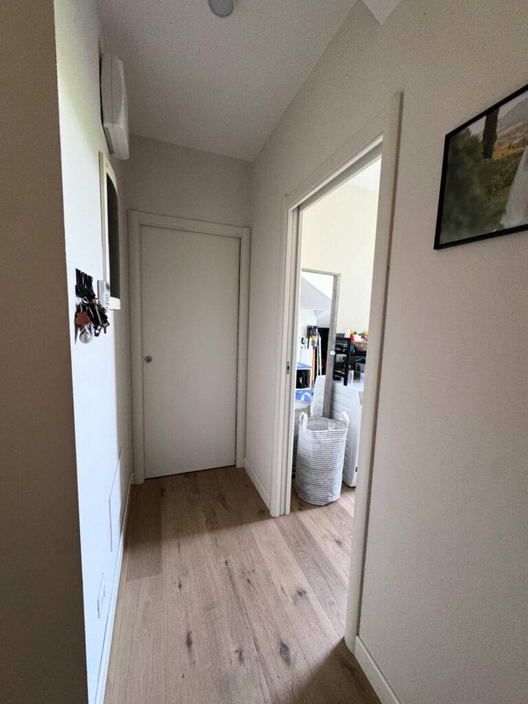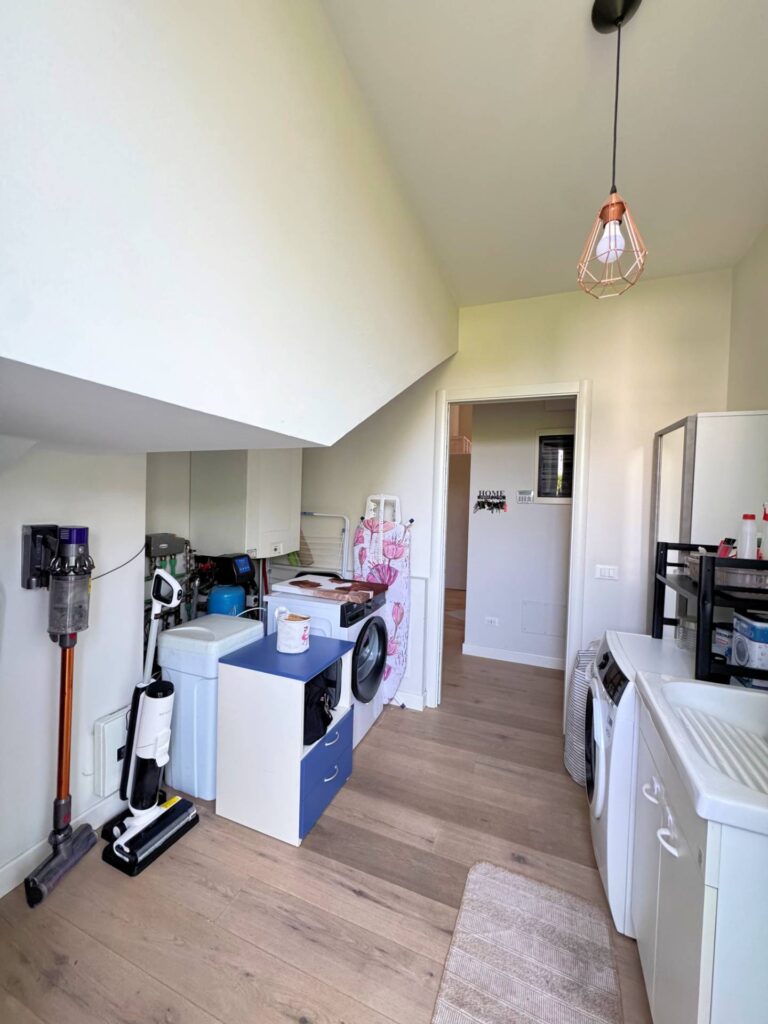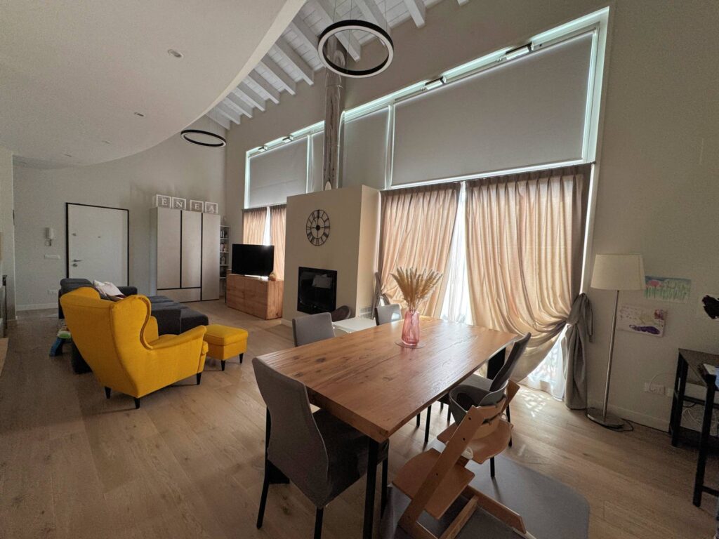 Piano Superiore dove troviamo ulteriore stanza adibita a camera da letto , bagno con doccia e finestrato, e cabina armadio spazio soppalcato di notevoli dimensioni che affaccia sul soggiorno, offrendo continuità visiva tra livelli.