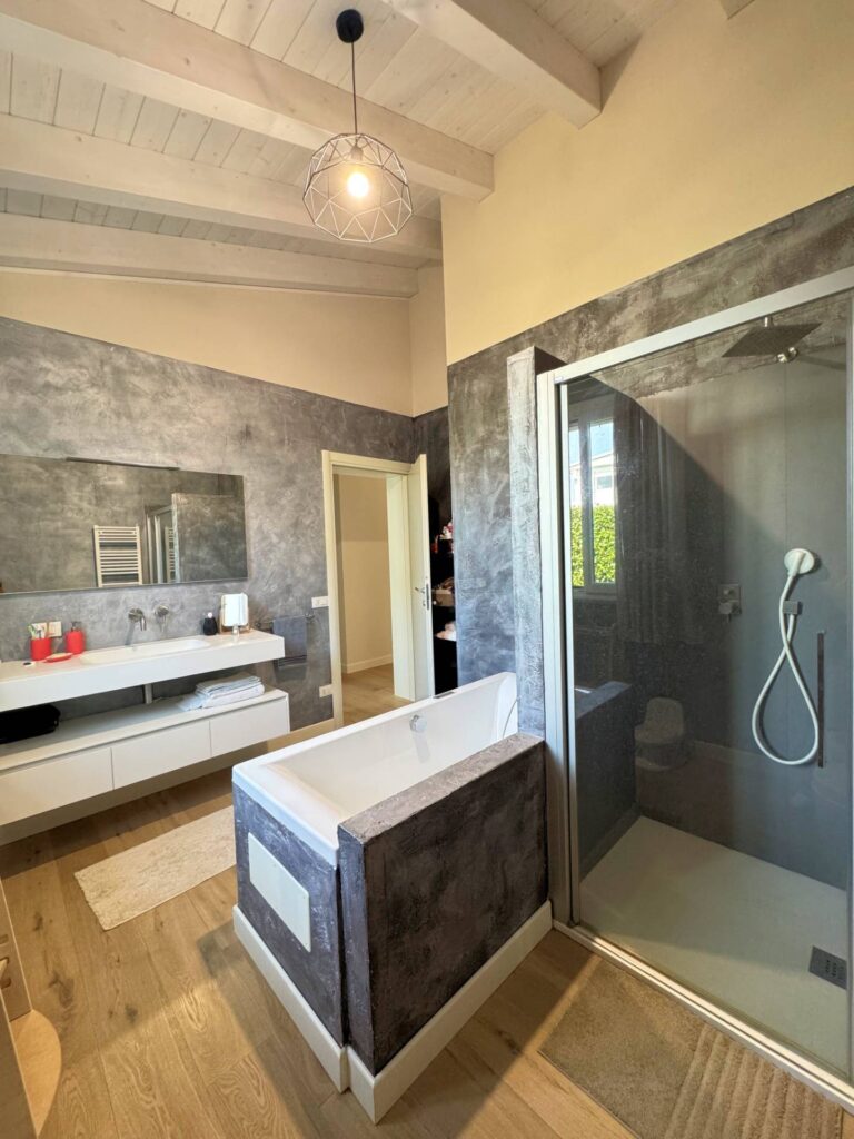 Comfort all’avanguardia (pannello solare, riscaldamento a pavimento, aria condizionata, allarme) abbinati a finiture di pregio e dettagli curati.