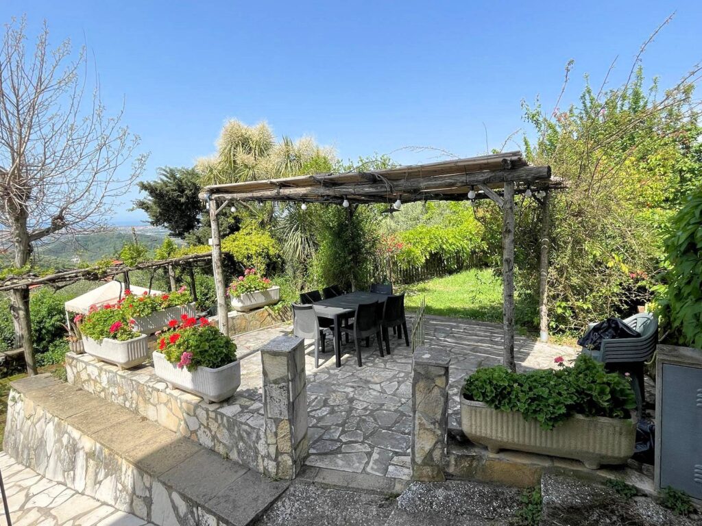 La casa ha il giardino con gazebo e una terrazza coperta, due appezzamenti di terreno ( per una eventuale piscina o coltivazione). parcheggio per 8 macchine (introvabile nei piccoli paesi).